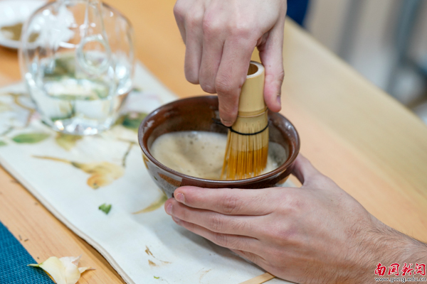 同学们轻轻搅动茶筅(陈源霖 摄)