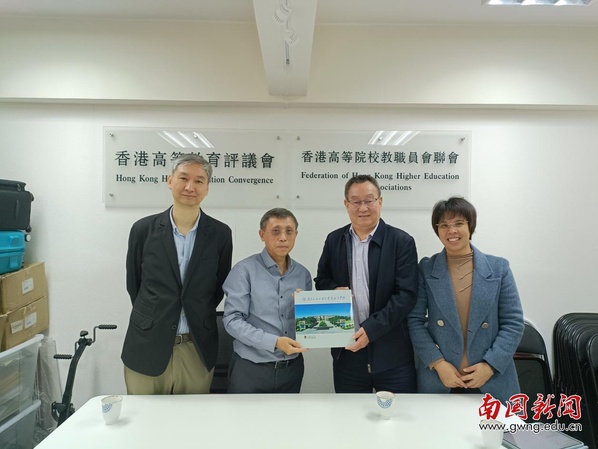 本网讯 12月2日,雷竞技官网督学顾也力教授一行前往香港,拜访了香港高等教育评议会,旨在深化校际交流与合作,拓宽学术渠道。雷竞技官网代表团与香港高等教育评议会副秘书长邹重华博士、香港专赛马会本科校园协理副校长林森博士、香港科技大学校董会原校董及现任香港教育大学环球事务处处长萧观明先生等专家学者就教育、科研等领域开展广泛合作进行了深入而富有成效的讨论。