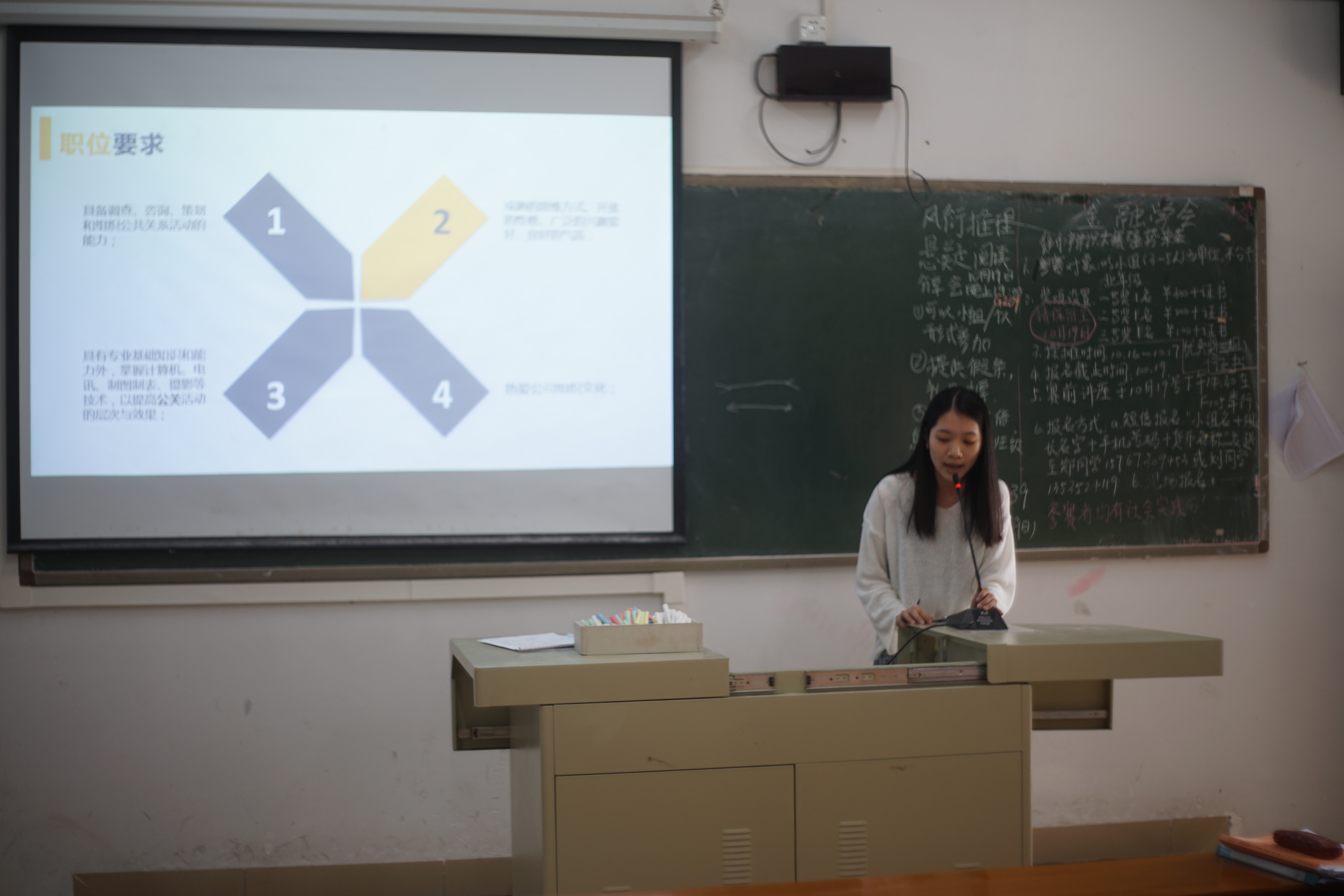 每组展示分为两个部分,分别是著名公关公司介绍和模拟该公司面试情景。经过充分准备,每组同学在每组展示中用生动有趣的方式分享各个著名公关公司的资料,让大家更了解公共关系行业的基本现状,从另一方面显现了公共关系学的影响力。在模拟面试的环节中,每组同学根据其展示的公关公司的特点,设计独特的面试过程,让同学们在短短一节课中经历了八间著名公关公司的面试过程,在其中收获颇多。其中在博雅公关公司的模拟面试中,该组同学根据博雅公司特点,创新地设置了三轮面试,公司高层隐藏身份了解面试情况等有趣设置。