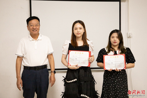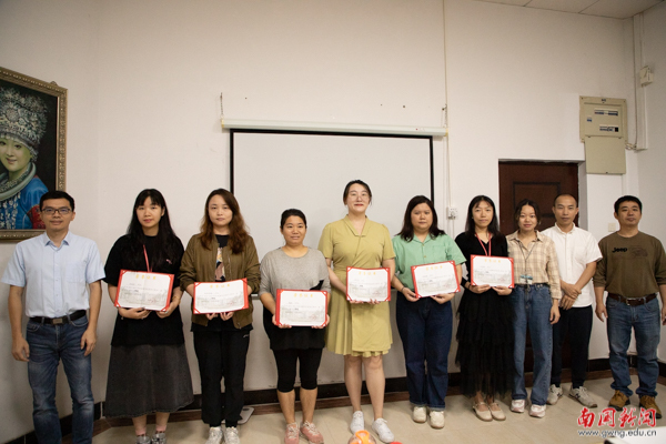 东语学院教学秘书杨丽婷、英文学院科研秘书徐陶作为优秀图书馆信息员代表发言,她们感谢领导和同事的认可和支持,并就自身工作体会强调了图书馆各类文献资源及服务对科研、教学的重要性。