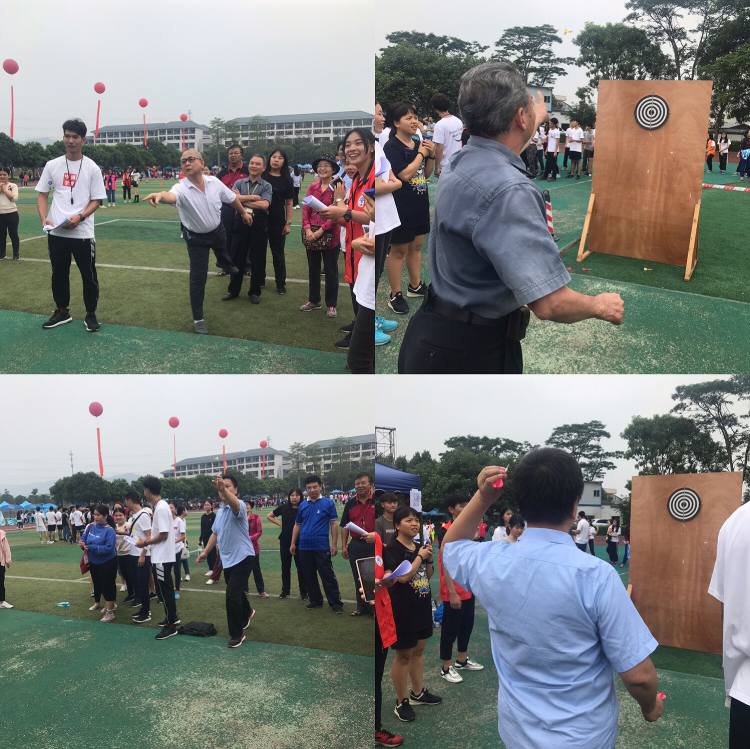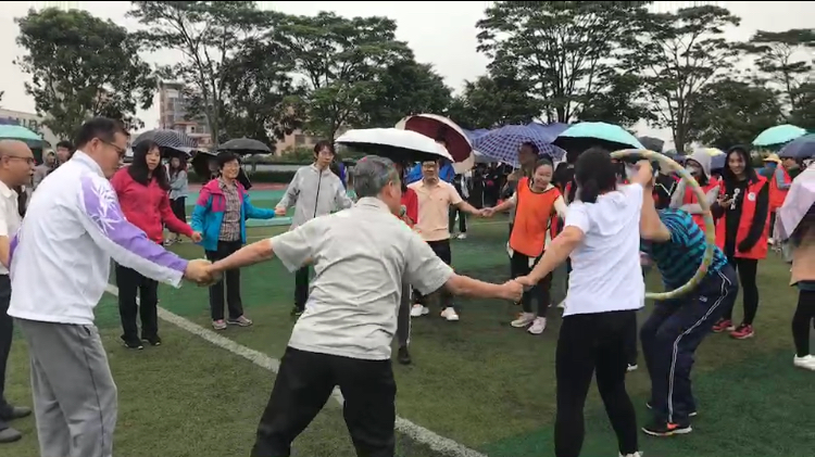 两天赛程中,可敬的教授们欢乐地参与了眼明手快的掷飞镖和趣味跳绳比赛,中青年教师负责体现力量与速度的拔河、12*60接力比赛和鸳鸯背瓜等项目。老中青三代教师通力合作、其乐融融,创造了良好的体育比赛氛围。