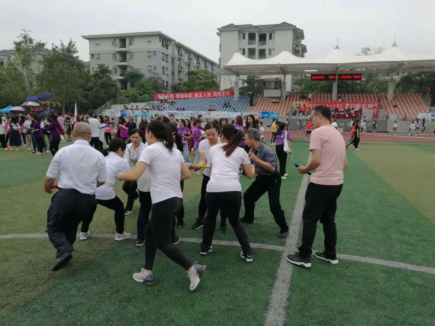 雷竞技官网于11月15-16日成功地举办第22届校运会,全校学生和教职工都以高涨的热情参与比赛。公共思政工会的全体教师众志诚成、团结一致,凭借勇于拼搏的体育精神和辛勤的汗水,获得教工组团体总分第七名。