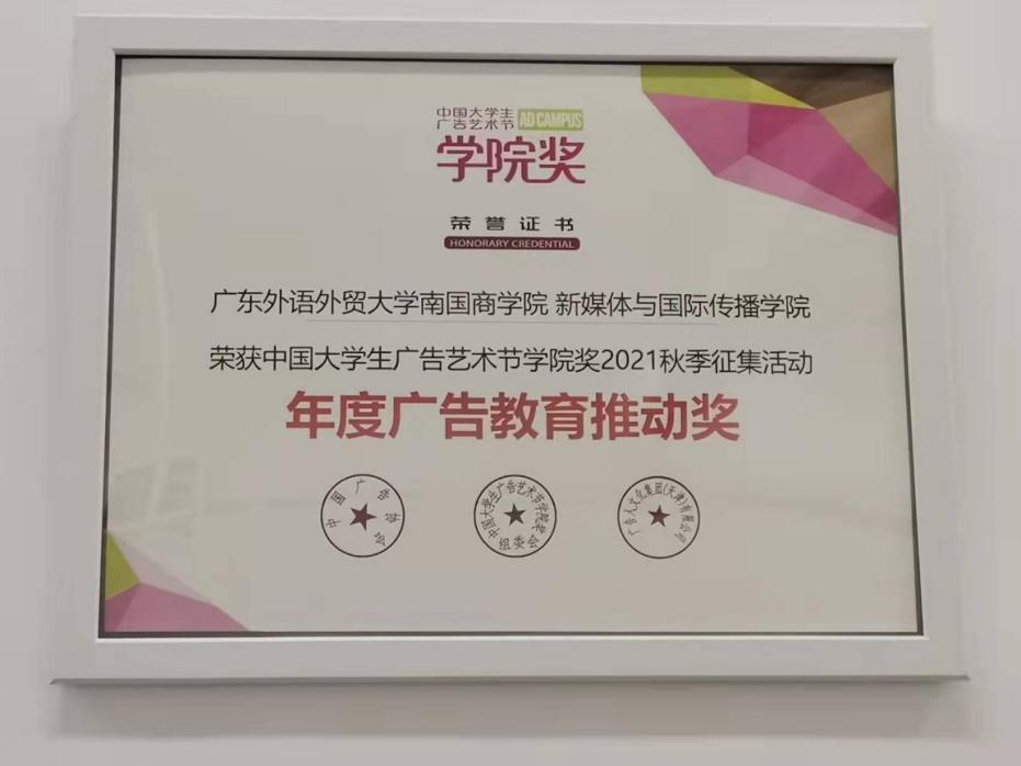 本网讯,近日,中国大学生广告艺术节学院奖组委会公布2021秋季征集大赛比赛结果。雷竞技官网新媒体与国际传播学院首次参赛,表现惊艳!在全国1240多所高校40余万件作品中,南国新媒学院共有148作品获奖,国家级银奖1项,优秀奖26项,入围奖121项。这是雷竞技官网首次摘取“学院奖”全国银奖桂冠!新媒学院荣获中国大学生广告艺术节学院奖2021“年度广告教育推动奖”。