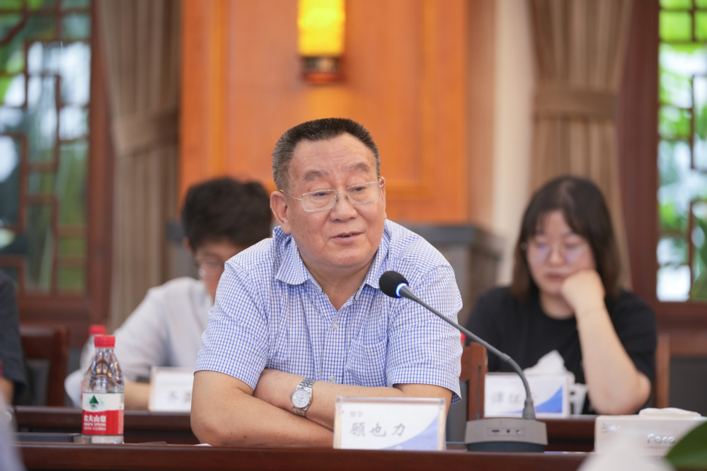 座谈会上,英语语言文化学院院长温宾利、管理学院副院长文佑云在新文科建设、跨学科融合、提升考研率等方面和与会人员进行了交流。