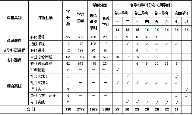 本专业总学分176学分,2772学时,其中: