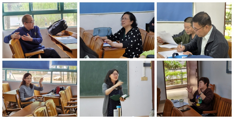 四位老师轮流进行现场授课,每位老师授课展示结束之后,参会的英语系的教授们和老师们进行了有针对性的评价,提出了很多宝贵的建议。譬如,温宾利教授认为兰玉老师在进行导入提问的时候,问题应该更具体,学生才能更知道如何回答;他建议张群芳老师的词汇学可以采取“bottom-up”的方式,先给例子,再给定义或进行特点的分析。权立宏教授提出教师授课起始应该明确告知学生本节课的教学目标,并在课堂结束时进行大致的总结;她认为词汇学课程的讲授有一定的难度,术语较多,PPT展示的内容可适当简化。张映先教授认为词汇学课程对学生了解英语词汇的历史和发展非常重要,其课程性质增加了其授课难度,同时她指出教学过程中如何和学生达成有效的互动是至关重要的一点。张勤教授提出教师授课过程中要注意语速和眼神交流,要注重启发学生的思维,专业性较强的课程要注意提到的术语是否需要解释。李春梅博士和王家宝老师作为《综合英语(2)》的主讲教师,主要针对李潇老师的授课提出了自己的建议,认为导入的时候要注意话题之间的跨度,讲解过程要重点明确,主线明晰,去掉无关或者不重要的部分,如建议不要在讲解时插入作业的布置。参会的其他英语系教师也结合自己的经验,结合四位老师的授课提出了自己的看法。