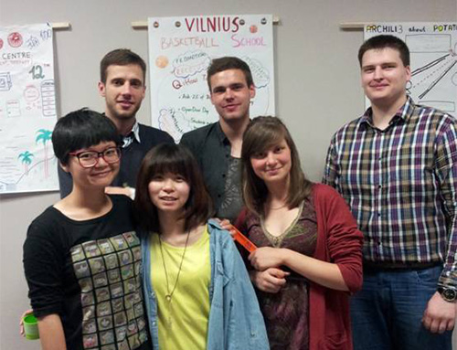 “中欧大学生管理创新项目”有来自11个国家的70名大学生参加。参与项目的第一天,刚刚步入教室,教室里热情的掌声和欢呼,竟然让平时外向的我有点手足无措。在简单的项目介绍和来宾致辞后,我们被随机分组,每一组都会由至少一名中国学生以及来自立陶宛和其他国家的学生组成,学生也来自不同专业。我被分在了第五组,和来自立陶宛的3位学生和比利时的1位学生组成了一组。