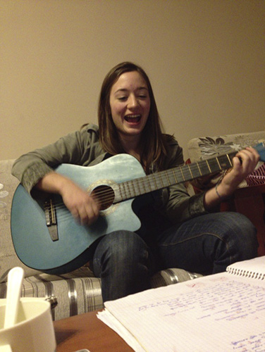 A:我喜欢和同学一起做运动,来南商后在体育课上我还学会了打羽毛球。弹吉它也是我的兴趣,因为我从小就受到父亲的音乐素养的熏陶。在这里,我也会经常和我的朋友们一起打羽毛球、弹吉他。