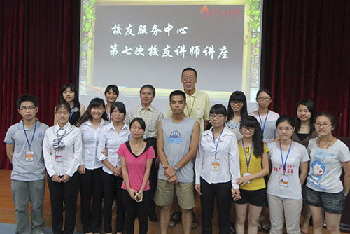 叶旭向分别用中文和日文进行自我介绍。他以回答日语专业同学提出的问题开始他的演讲,并就为何选择此专业和如何学习该专业发表了他自己的看法。期间,他还介绍了学习日语的方法,也向同学们推荐了《小狐狸海伦》、《大雄与奇迹之岛》、《世界上惟一的花》等相关书籍、影视资料。