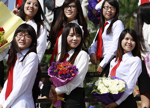 当我们戴上方正的学士帽,扣好学士袍的纽扣,扶正稍稍歪倒一边的领带,握紧绑着红线的毕业证书,将流苏拨到前面时,一起扬起嘴角的微笑,我们毕业了!(2009级西班牙语1班 吴良芊)