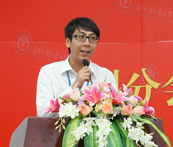 随后,校友谢欣上台汇报广州分会的筹备工作并介绍了广州分会的定位和运作规划。他解读了广州校友会Logo的设计理念,并就广州分会“三个部门、四个特点、一个原则”介绍广州分会的运作规划。谢欣表示,他希望校友会这个平台能为广州校友提供生活或工作上的帮助,实现资源互换,资源共享。他说:“广州校友分会将是校友们‘后校园时代’的起点,也是校友们在广州的另一个家。