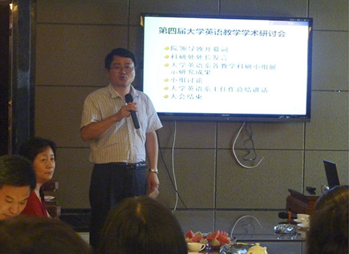 会上,大学英语系4个教学科研小组(分别是应用语言学小组、文学及翻译小组、文化小组和商务英语小组)的教师代表分别进行了主题发言,介绍各自的教学科研情况、汇报研究成果。