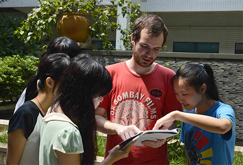 作为“老外”的Jan,不仅是教授外语的老师,也是主动学习汉语的“学生”。虽然来到南商仅一年,但他的汉语水平进步明显。2012级德语1班的石筱妮感叹道:“记得初次见Jan的时候,他在介绍中将家乡‘不莱梅’误说成了‘不来不美’,但经过一年,只需要我们说几个德语单词,他就能猜到我们想要表达的意思,有时候甚至能用汉语回答。因此,我们经常开玩笑说,跟Jan对话已经越来越没有成就感了,他的进步比我们快多了。”