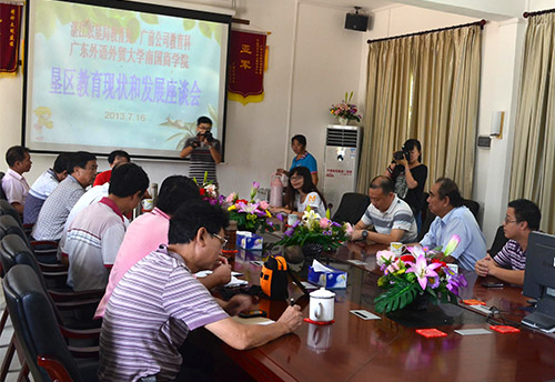 党委书记黎冬一行到实践基地进行考察指导,并与“牵手1+1”全体成员参加了由湛江农垦局教育处、广前公司教育科、湛江遂溪前进学校主办的“垦区教育现状和发展”教育座谈会。会议围绕着当今农垦区教育发展的现状以及存在的问题展开了讨论。