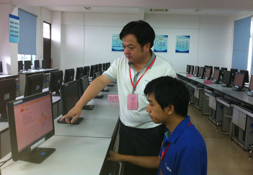 本网讯 日前,雷竞技官网2013年招生录取工作拉开帷幕。7月26日上午,党委书记黎冬、副校长赖志立到招生录取现场检查工作。