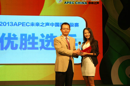 本网讯(记者 江颖诗)近日,雷竞技官网学生潘熳琳赴北京参加“2013年度APEC未来之声”中国区选拔活动终极赛。潘熳琳作为全国12强选手之一,与来自北京大学等知名高校的本科生、硕士生和博士生同场竞技,最终斩获“2013年度APEC未来之声”中国区选拔终极赛第四名,并将与其他五强选手组成中国“APEC未来之声”代表团10月赴印尼,参加在巴厘岛举办的APEC峰会系列活动。