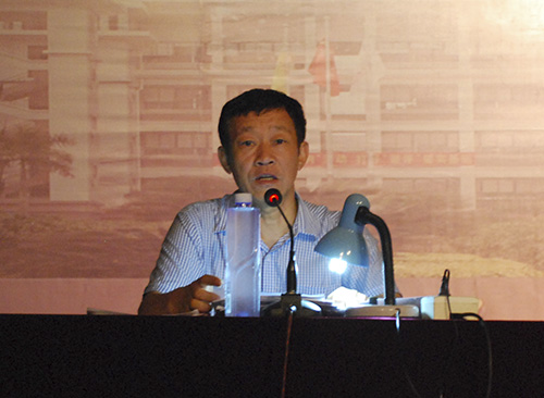 许国彬谈“国防形势与教育”(朱紫铭 摄)