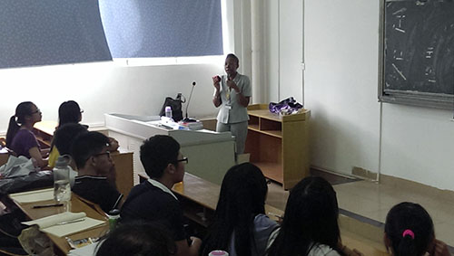 讲座后,Rose耐心地解答了同学们的疑问,并跟同学交流爱自己的方法和途径。 (大学英语系 吴宇媚 陈文衍)