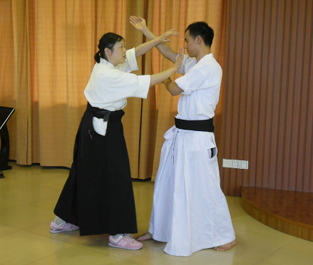 合气道课堂上,金子老师示范动作(刘伊诗 摄)
