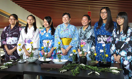 花道课上,金子老师与同学们合影(李凤玲 摄)