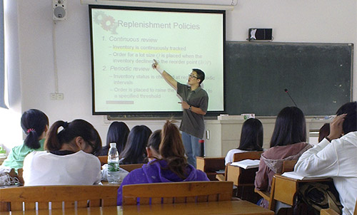 本网讯 10月28日上午,国际工商管理系物流教研室开展了双语教学专项听课活动。物流教研室全体教师听取了上学年度“优秀教师”李蓬实老师的《供应链管理》双语教学课程。教学班级是2012级物流管理全英1班。