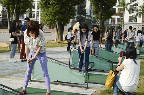 下午3:00,校友们分别在羽毛球场和高尔夫场举行小型比赛。青绿空旷的高尔夫球场上,校友们兴致勃勃地挥动着高尔夫杆球。羽毛球场传来一阵欢呼声,校友们激烈地进行羽毛球比赛。校友们挥洒着汗水,释放平日职场带来的压力,重温了昔日的欢乐时光。