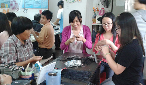 据悉,康园工疗站共有12名学员,多数是二十多岁的智力残疾人士。平日,这些学员会在工疗站里做比较简单的手工活,锻炼动手的能力。 (东语系 翁琳 陈雪雯)