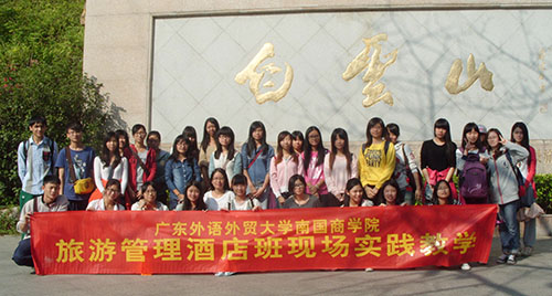 本网讯 11月15日,国际工商管理系2012级旅游管理旅行社班和酒店班学生赴白云山开展《导游业务》课程的实践教学活动。本次教学的主题为“白云山模拟导游实训”。