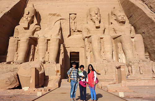 在阿布辛贝大神殿前合影