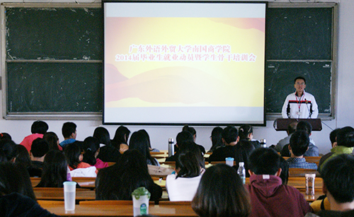 本网讯 (实习记者 曾子聪 梁家宝) 11月26日,2014届毕业生就业动员大会暨学生骨干培训会在C301召开。党委书记黎冬出席了动员大会。2014届毕业班辅导员、2014届毕业生代表参加会议。