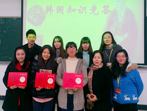 本网讯 12月19日,东方语言文化系在G101举行韩国知识问答竞赛。评委由朝鲜语专业老师、外教金先姬老师及韩国留学生担任。2010级朝鲜语专业同学参与了活动。