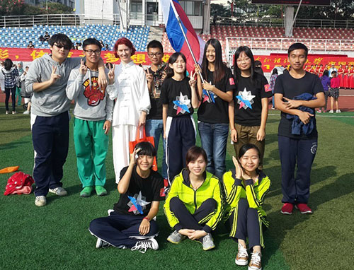 校运会上,与西语系师生在一起