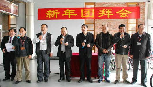 随后,全体校领导向教职员工拜年,祝愿大家新年快乐,身体健康,家和万事兴。