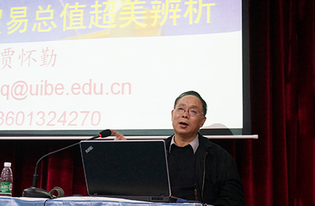 本网讯(记者 刘瑶 罗海东) 3月6日,对外经济贸易大学教授、中国对外经济贸易统计学会副会长贾怀勤在F101学术报告厅主讲了一场题为“中国贸易额超美数据辨析及建设贸易强国的思考”的讲座。讲座由副校长熊匡汉主持。