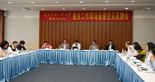 副校长赖志立、熊匡汉,校、系两级就业工作机构成员代表等参加了汇报会与反馈会。