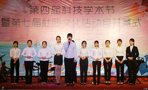 本网讯(记者 刘影婷) 4月3日晚,第四届科技学术节暨第七届社团文化活动月开幕式在商业街举行。党委书记黎冬出席了晚会。