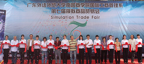 管理系主任陈炳辉致辞。他说:“模商是南商的‘广交会’,学校极力支持这样的实践活动。模商有利于丰富同学们的大学生活,帮助同学们学习企业经营的战略。”黎冬宣布第七届模拟商品贸易会现场交易环节正式开始。