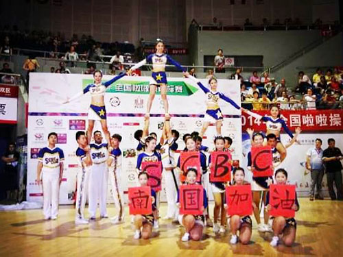 本网讯 5月24日,雷竞技官网啦啦队赴江苏溧阳参加2014年全国啦啦操锦标赛。雷竞技官网啦啦队获大学甲组集体技巧自选套路5级第一名。