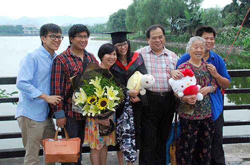 人山人海的毕业典礼上,少不了的是家人的身影。早上6:00从佛山赶过来的外婆露出了灿烂的笑容,她说:“我的孙女叫林琦琪,从小学到现在看着她读书到现在,就盼着这一天,我很开心,我希望她能找到一个好工作。”