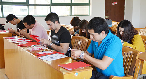 据了解,《中国文化常识》原来是留学生课堂学习的教材,也是留学生在课堂学习中了解中国文化的“窗口”。该书有韩语、西班牙语、法语等9个语种的对照版本,内容包括中国古代建筑、传统艺术、古代文学、传统思想等。据负责文化体验课的陈惠斯老师介绍:“虽然此教材对留学生学习中国文化有很好的作用,但这种教学也只限于传统的教学模式,并没有直接体验中国文化的直观感受。”传统的、局限于教室的讲授型中国文化课程已经不能适应留学生对学习中国文化的需求。于是,中国文化体验课应运而生。
