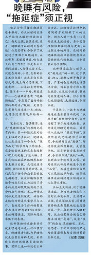 三等奖:晚睡有风险,“拖延症”须正视(刘臻)
