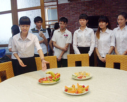 决赛在学校实训餐厅举行。决赛分为中式餐饮摆台和创意水果拼盘两个环节。中式餐饮摆台要求选手们在规定时间内,按中式餐饮摆台的规范要求进行。在创意水果拼盘比赛中,参赛选手们通过自己小组的创意并在规定时间内完成整个拼盘的制作。最终,2013级旅游管理全英班代表队获得决赛第一名。