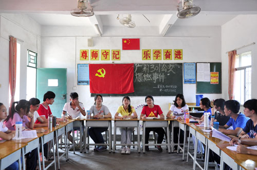 支部书记谢诚提醒队员在下乡期间仍然要时刻关注身边的时事,从时事联系日常生活。她要求队员在授课时要着重强调学生上下学路上的安全,以及对于溺水和中暑的防范。她还提到在推进沙口中心小学安全教育的同时,队员们自己也要注意交通安全、食品安全和人身安全。 (“星辰队” 钟咏仪)