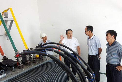 杨永强副校长(左二)检查电力增容工程