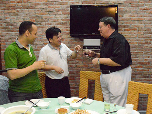 本网讯(记者 罗海东)一年一度的中秋节是举家团圆的日子,但是部分教授、外教因为种种原因不能回家团圆。因此,9月8日晚,学校在饭堂三楼举行中秋晚宴。副校长赖志立、熊匡汉与留校教授、外教欢聚一堂,共度中秋。