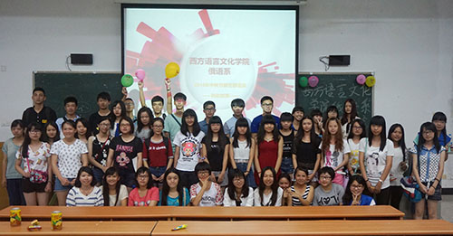 本网讯 9月8日晚,适逢中秋佳节,西方语言文化学院2014级新生中秋联谊会在F103-106举行。联谊会分德语系、法语系、西班牙语系和俄语系4个分会场同时举行。新生、老生与老师们欢聚一堂,共庆佳节。