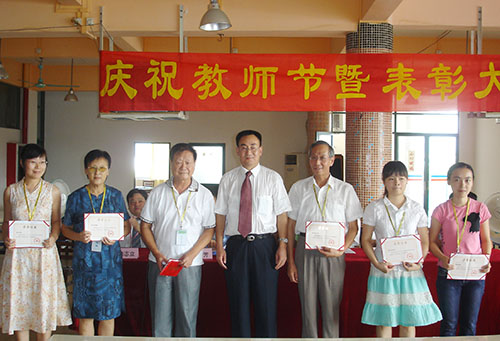 游新宇(左三)在教师节上受表彰 (资料照片)