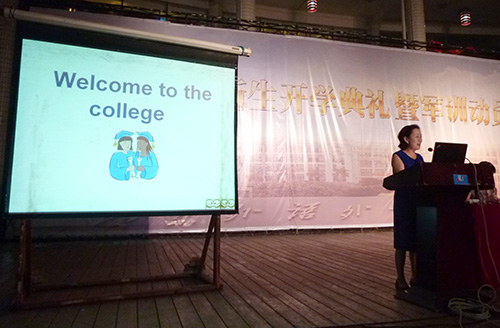 大学英语教学部主任章恒珍教授向新生介绍了大学英语课程体系,包括修读大学英语课程的课时数、大学英语课程的教学模式与评估方式以及剑桥商务英语证书(BEC)考试,她激励新生们充分利用大学时间,努力充实自我。她告诫新生要在大学期间培养自主学习、合理安排时间、人际交往、理论联系实际、克服挫折与困难、批判性思维以及英语交际等七种能力。