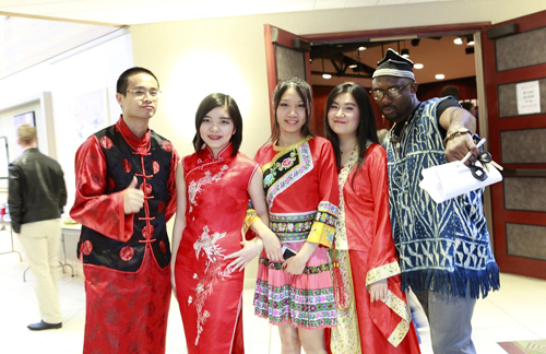 杜楚帆(左二)担任国际文化晚会主持人