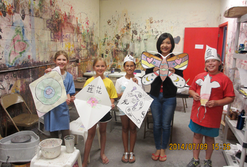 杜楚帆教孩子们做风筝